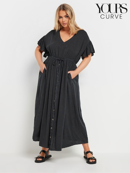Yours Curve Black Frill Sleeve Midaxi Dress